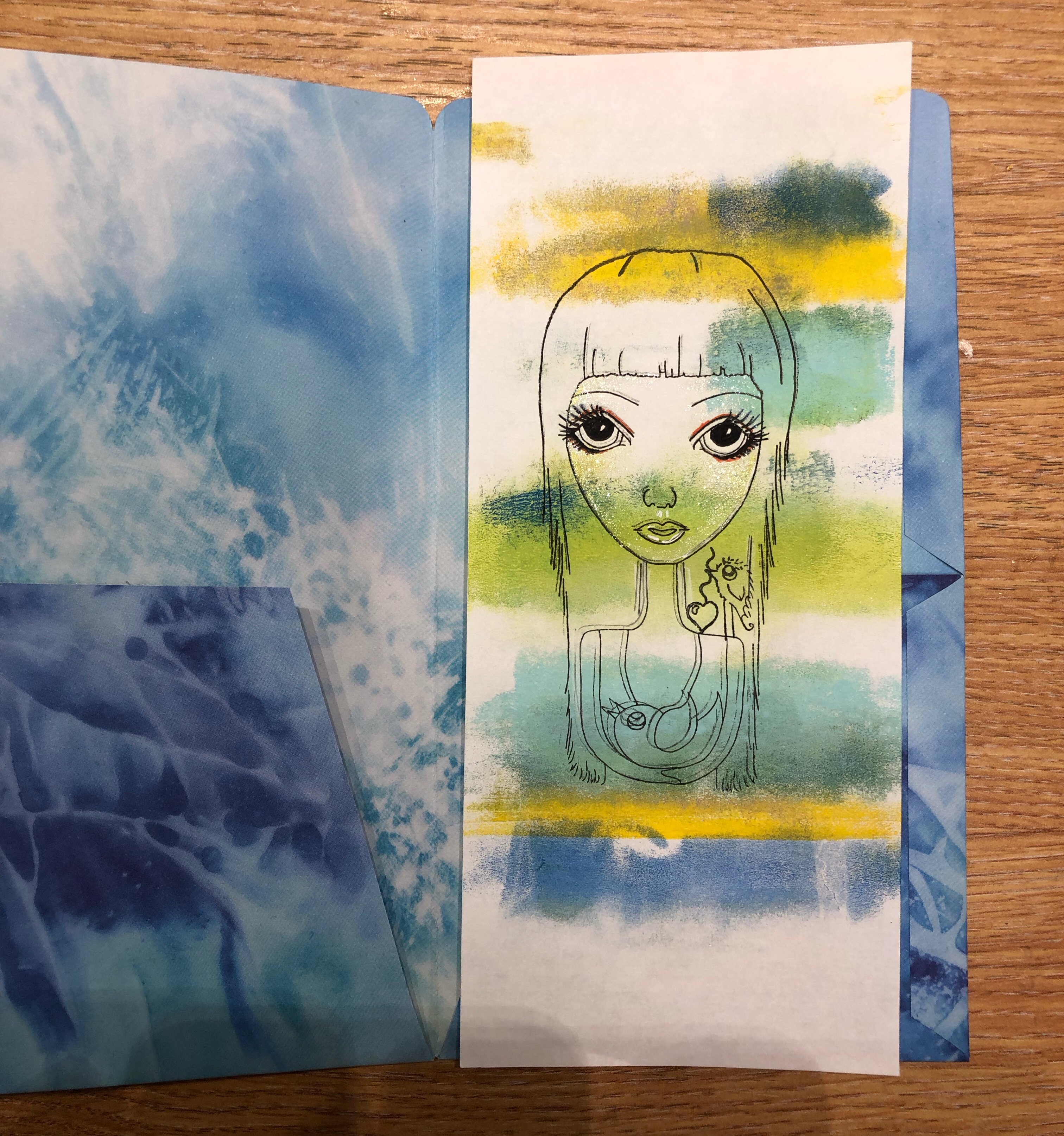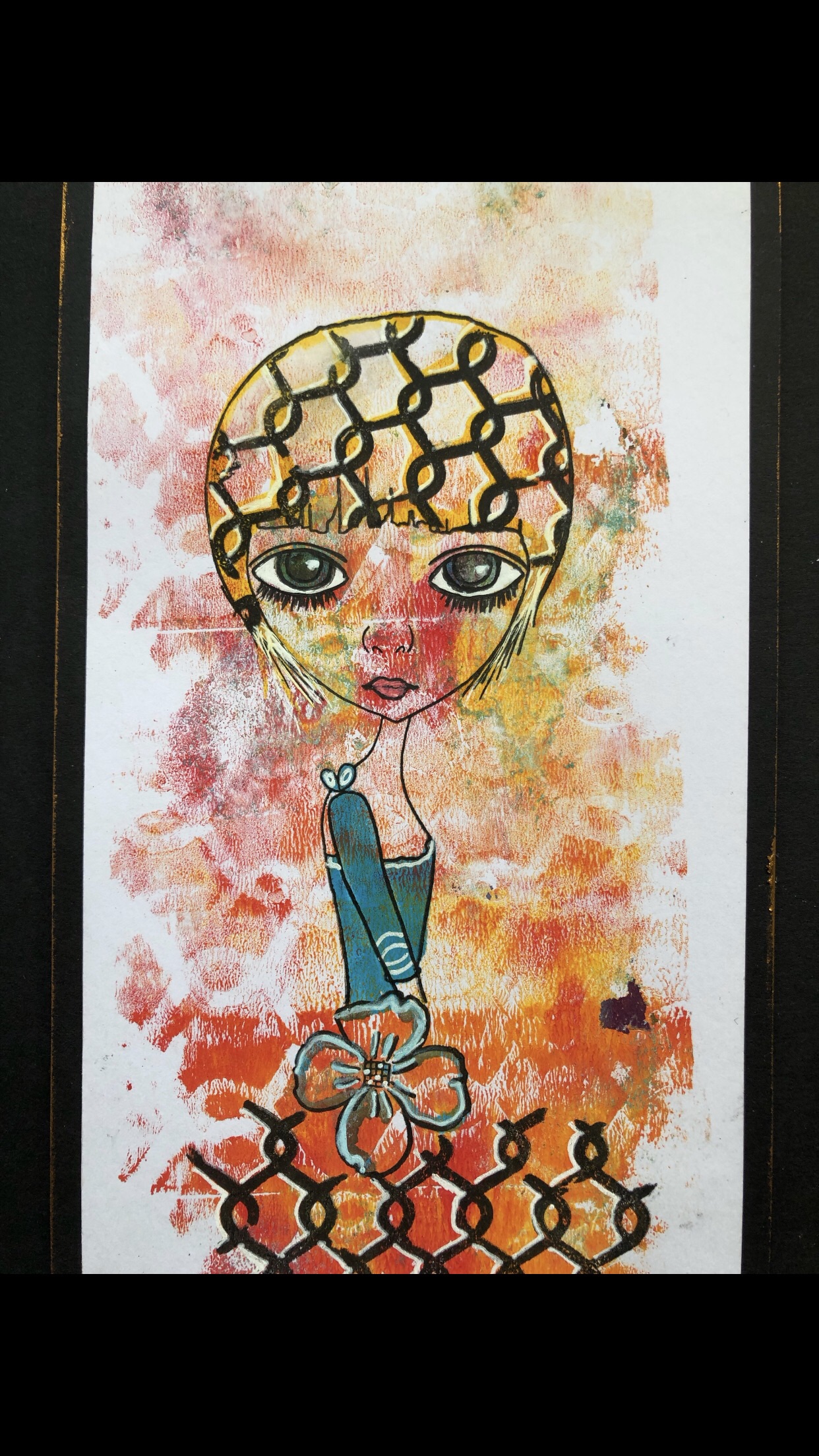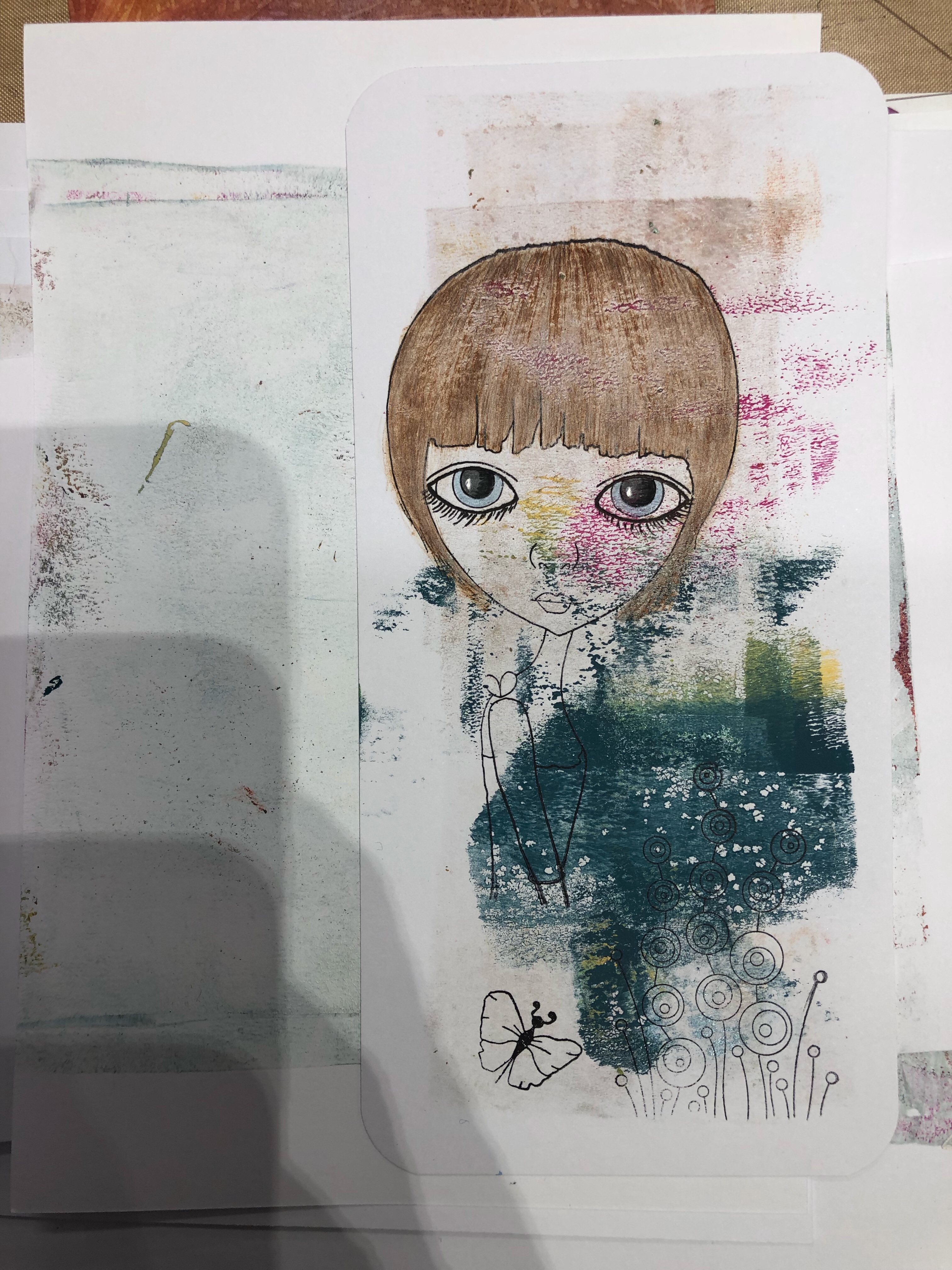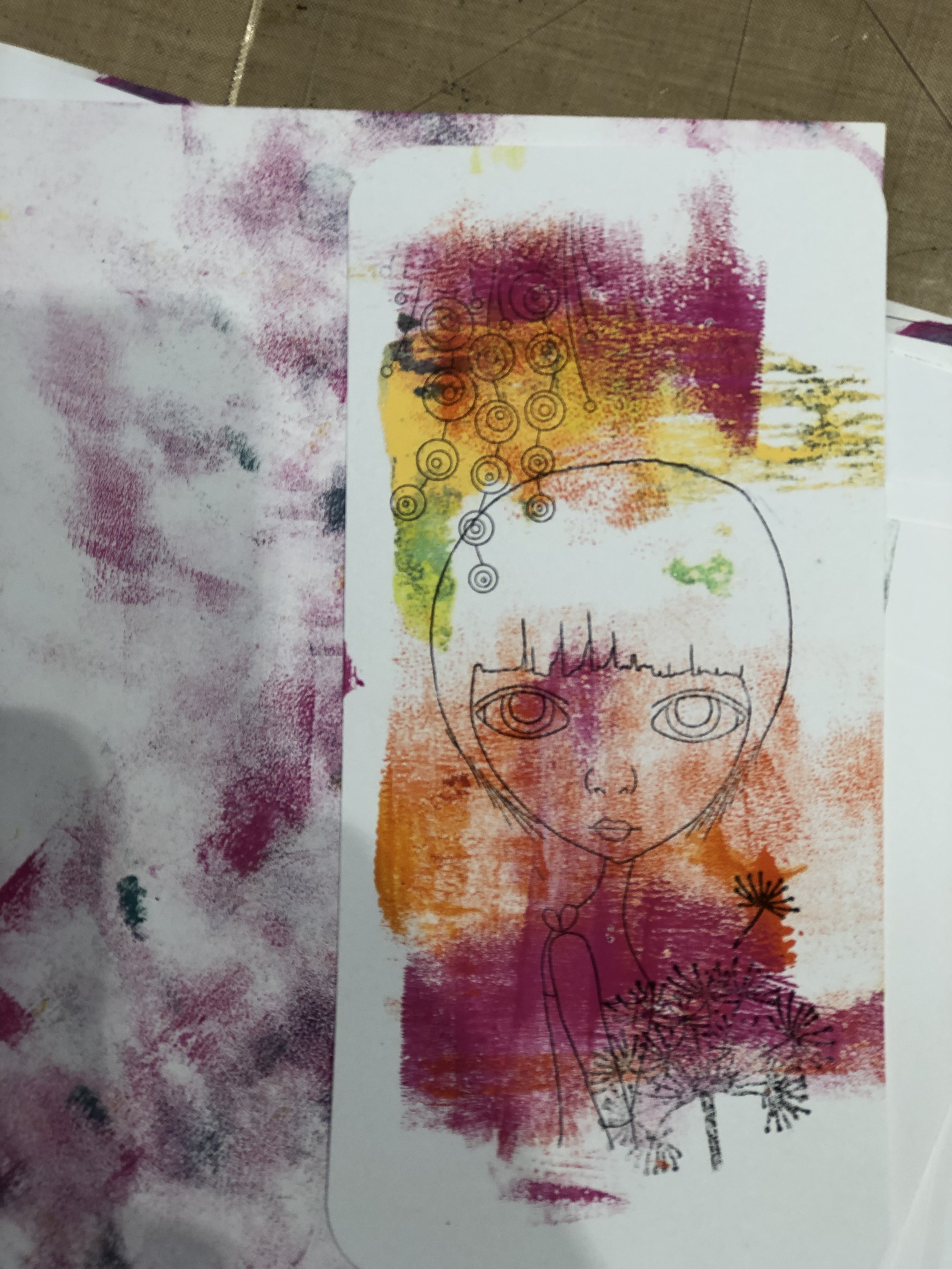 Immediately I had “DRIED” out her Gel Plate a little her prints were coming out like everyone else’s, the smile on her face when she realised it had nothing to do with her “doing it wrong” was precious.