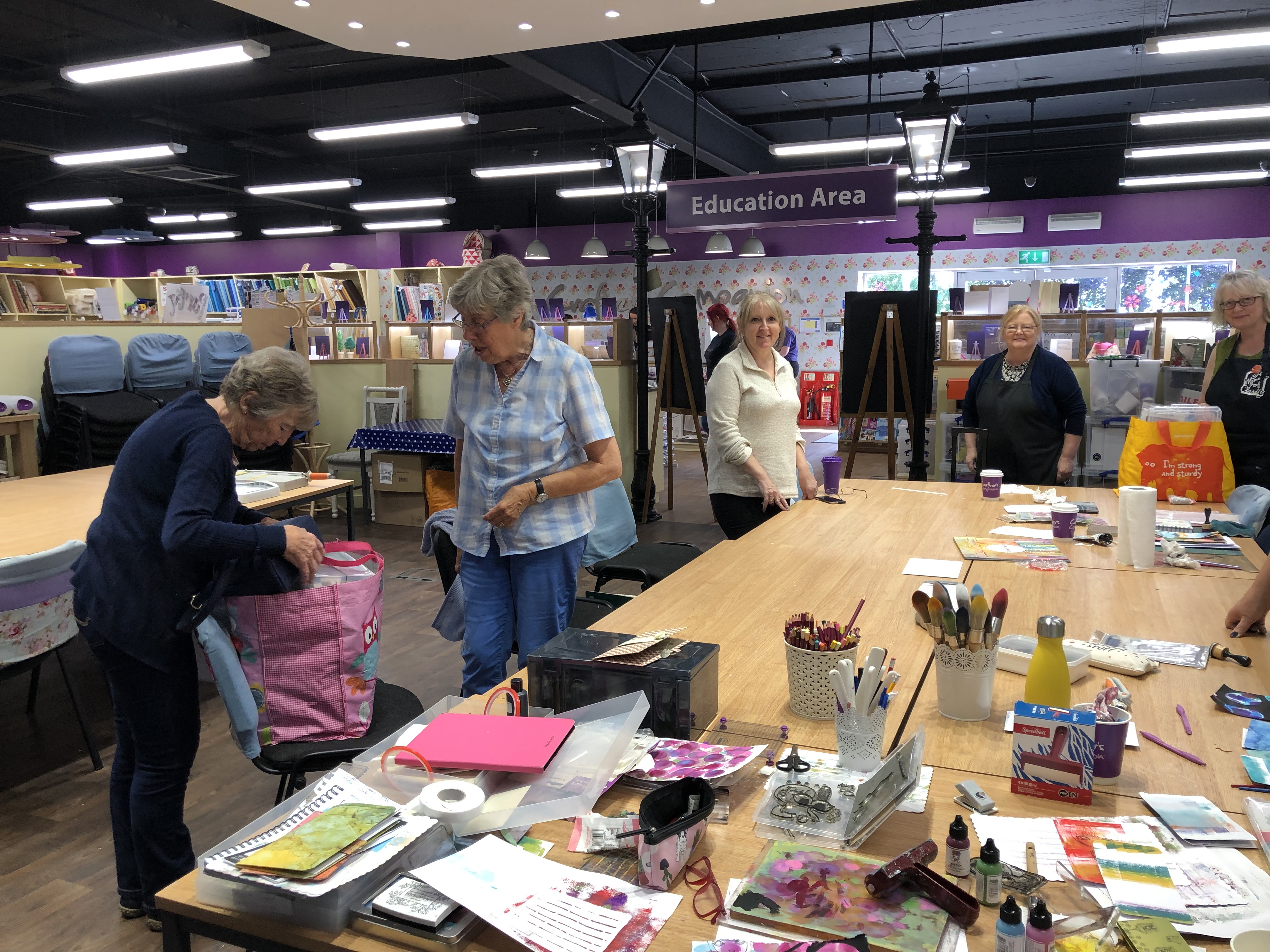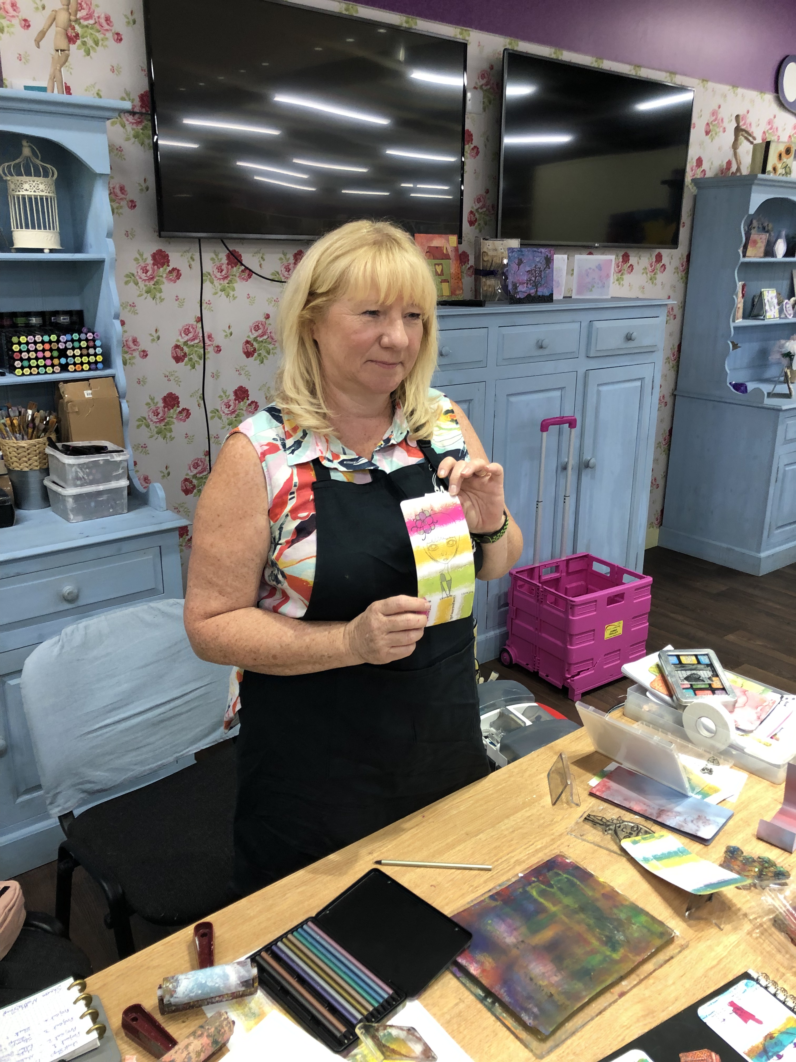 Feedback I get back, especially from new people is that my workshops are very relaxing and enjoyable. There is no pressure. This is the way I want it to be, we are playing with Gel Plates here, you have to give people time to just mess about with them, and after about the 5th or 6th print they all start to produce some really gorgeous prints. This is why we always do a “warm up session” with our Gel Prints.