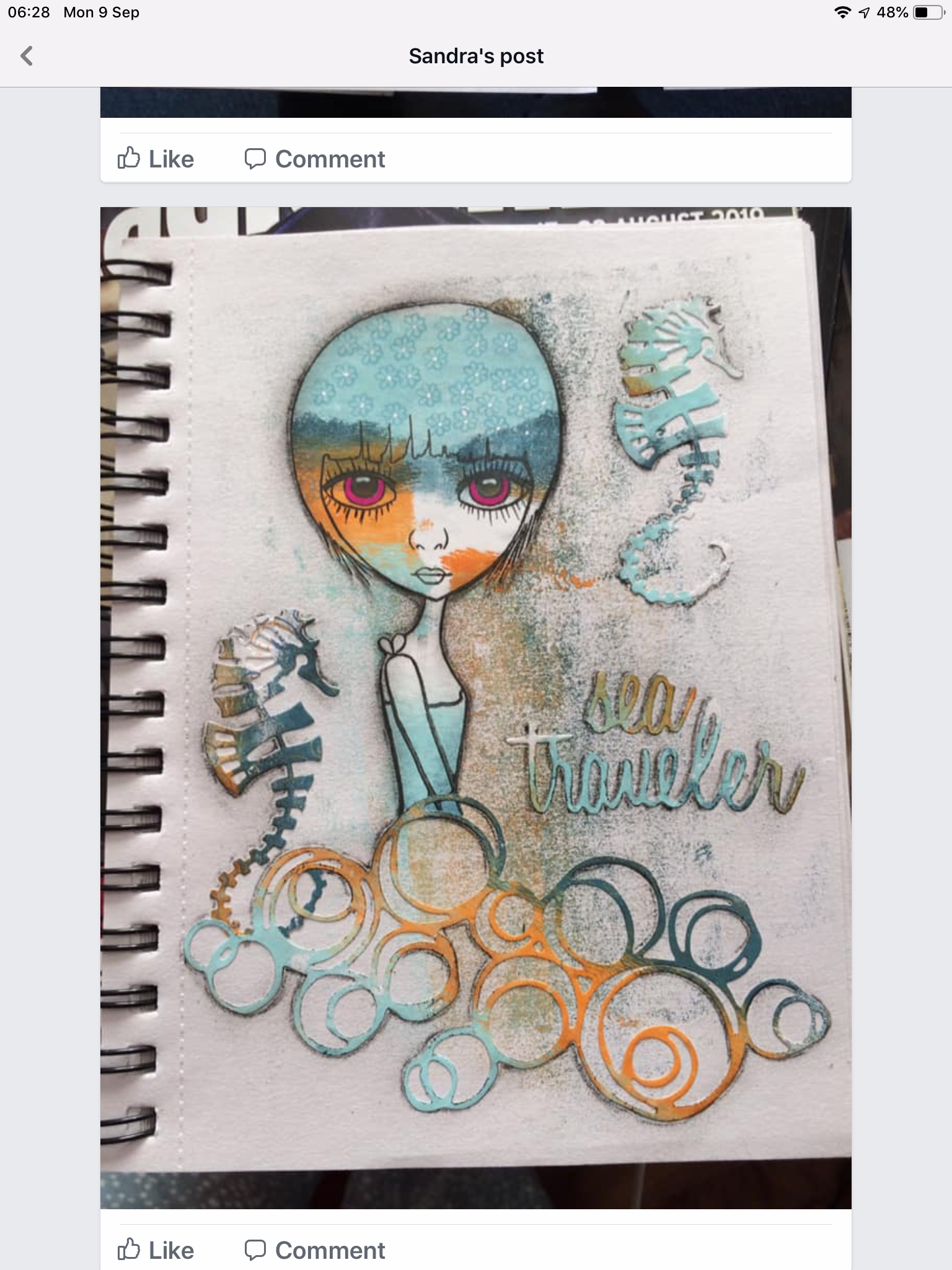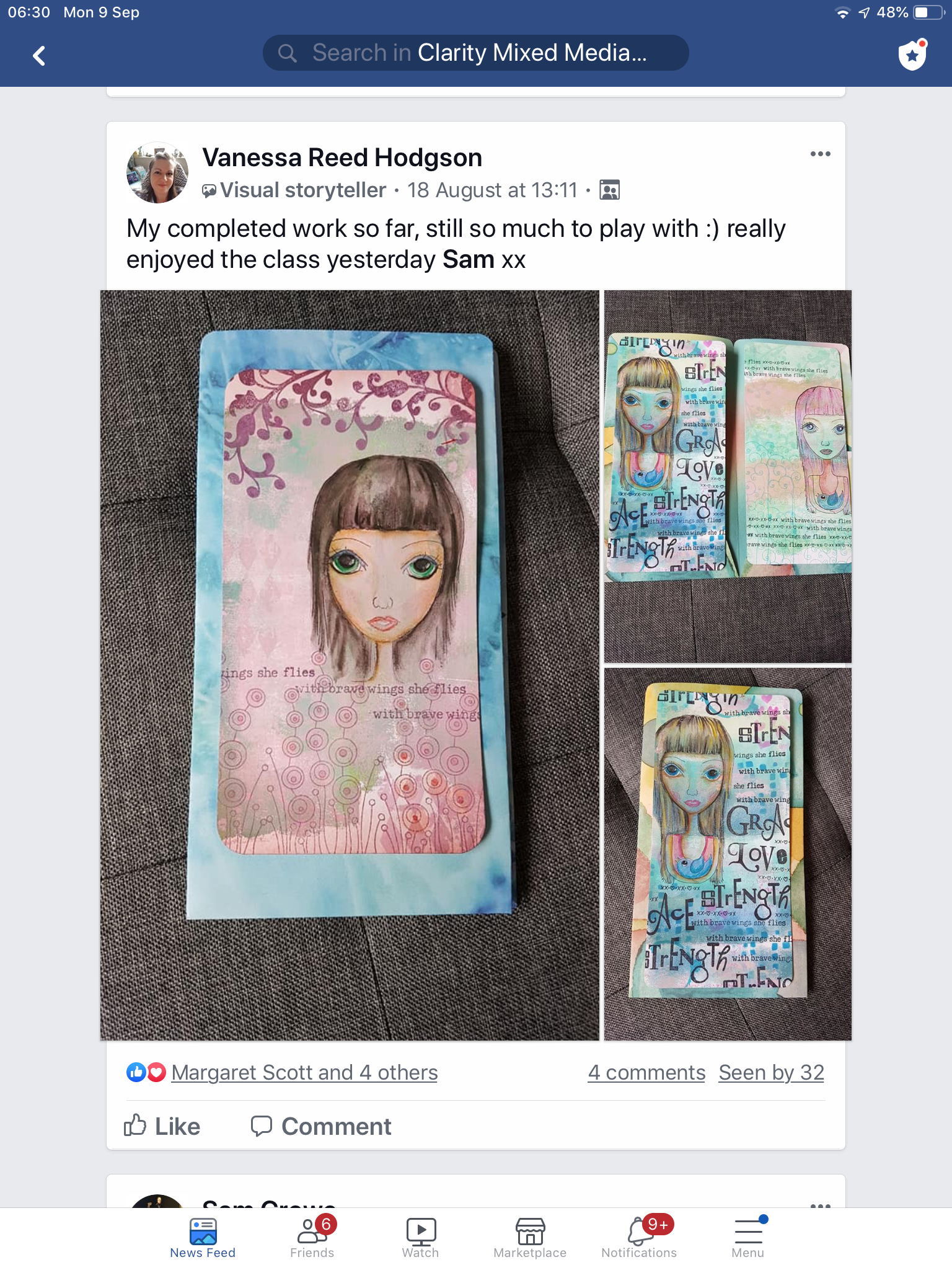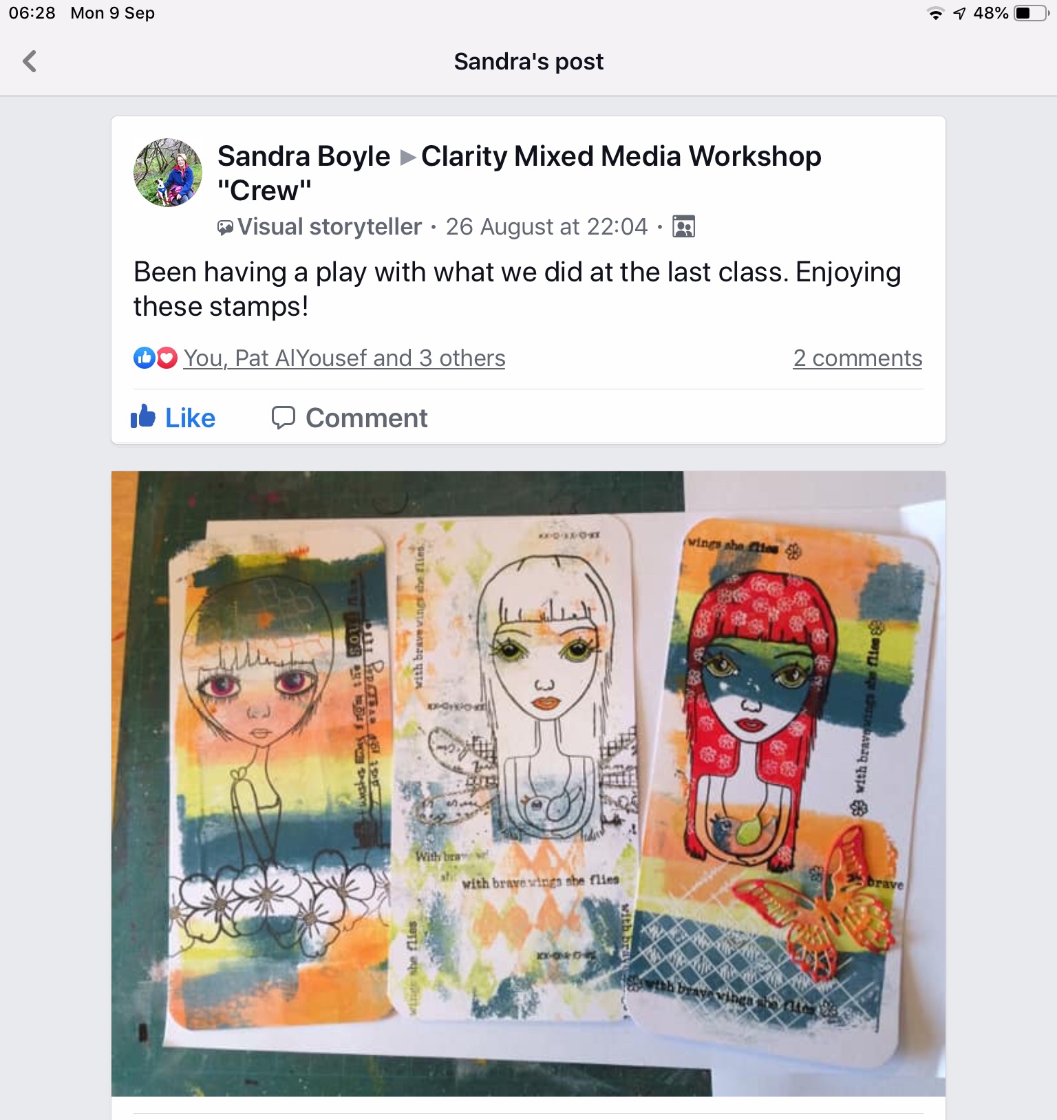 Sandra Boyle has posted some pictures of her finished projects in my “Clarity Mixed Media Workshop Crew” Page too.