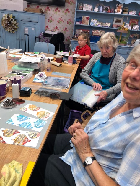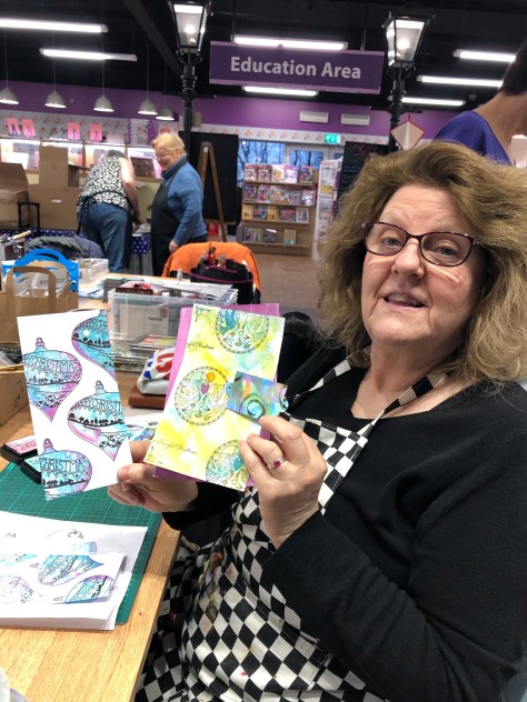 You may have noticed in the background of this photo with Sheila and Emma is a young girl. Well, let me tell you a funny story!!! I am in the middle of my workshop cracking the whip when a Lady comes in and sits her Neice down and says “can she just sit here for five minutes”? My Immediate thoughts, She is a Claritystamp fan, knows who I am and wants her Neice to watch for a few minutes. OK I thought, I am all up for educating the young and showing them how much fun crafting is whilst recruiting future Clarity Fans? So then she walks away? As she walks away she says over her shoulder “she likes to draw and colour in”!