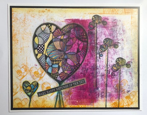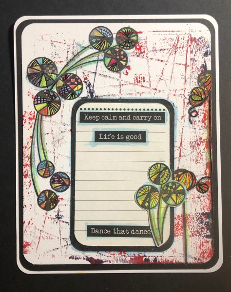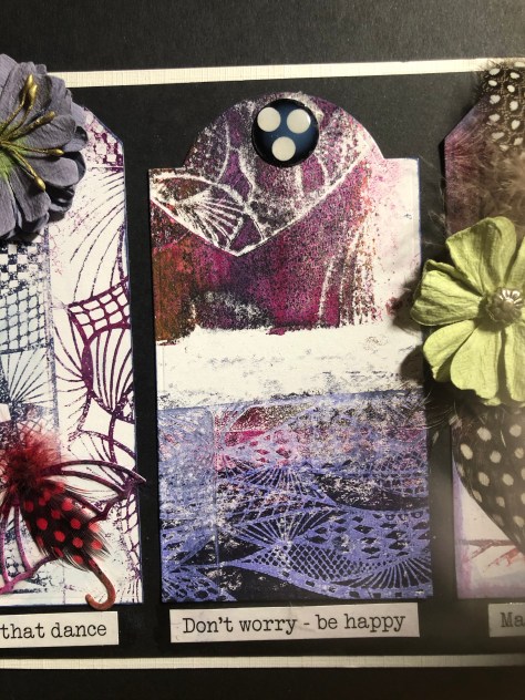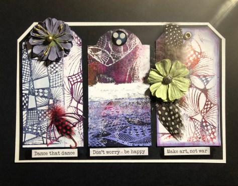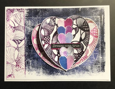 When I make my DT Samples there is a massive amount of work that goes into the thought process, the prep, the stress, the doubt, the late nights and finally the Loud Music to switch off the mind in the hope of new discovery of something a bit different??? Sometimes it can take me days to get my head into the right mode then if I get interrupted I am right back at wondering where to start. Boy is it a process with me. I try to do speed crafting with myself but it never works. I get there in the end though, usually when I think Ah Just get yer Gel Plate out!!!!