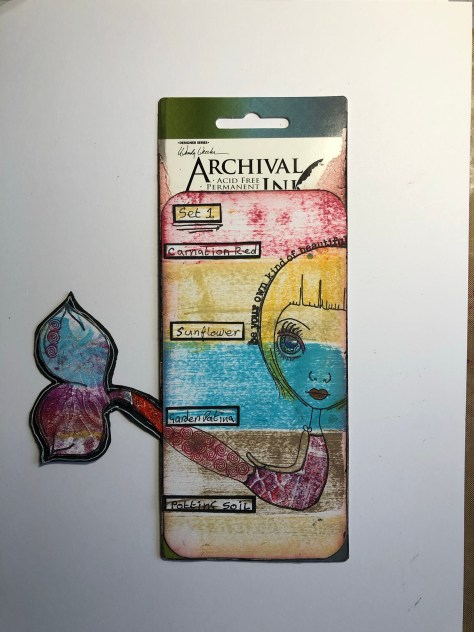 I enjoyed re-purposing the packaging from the Mini Archival Inks into a Colour Swatch of the Inks in the set. I did it with all of them.