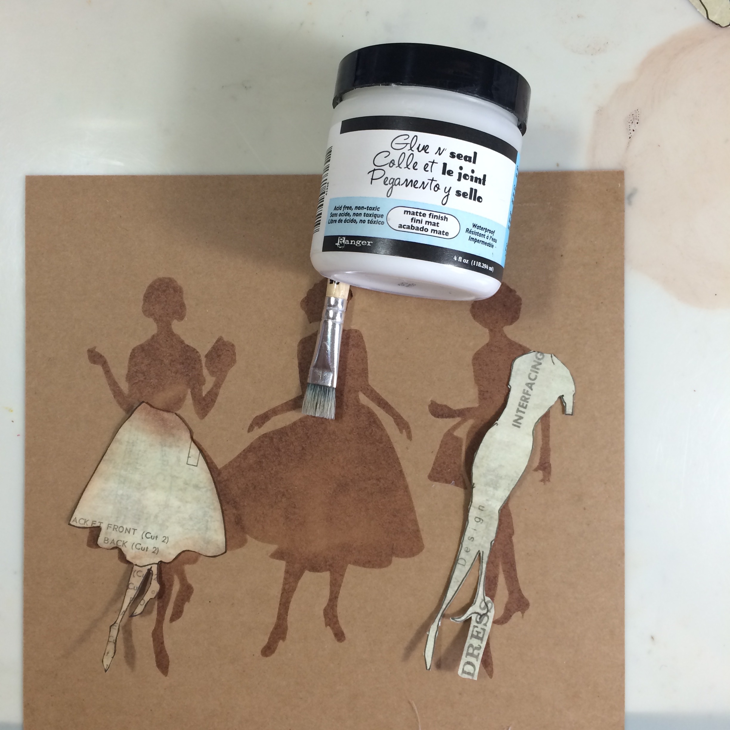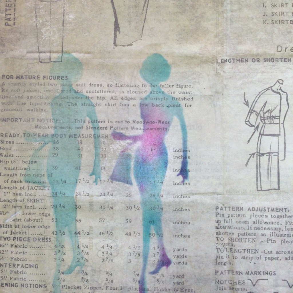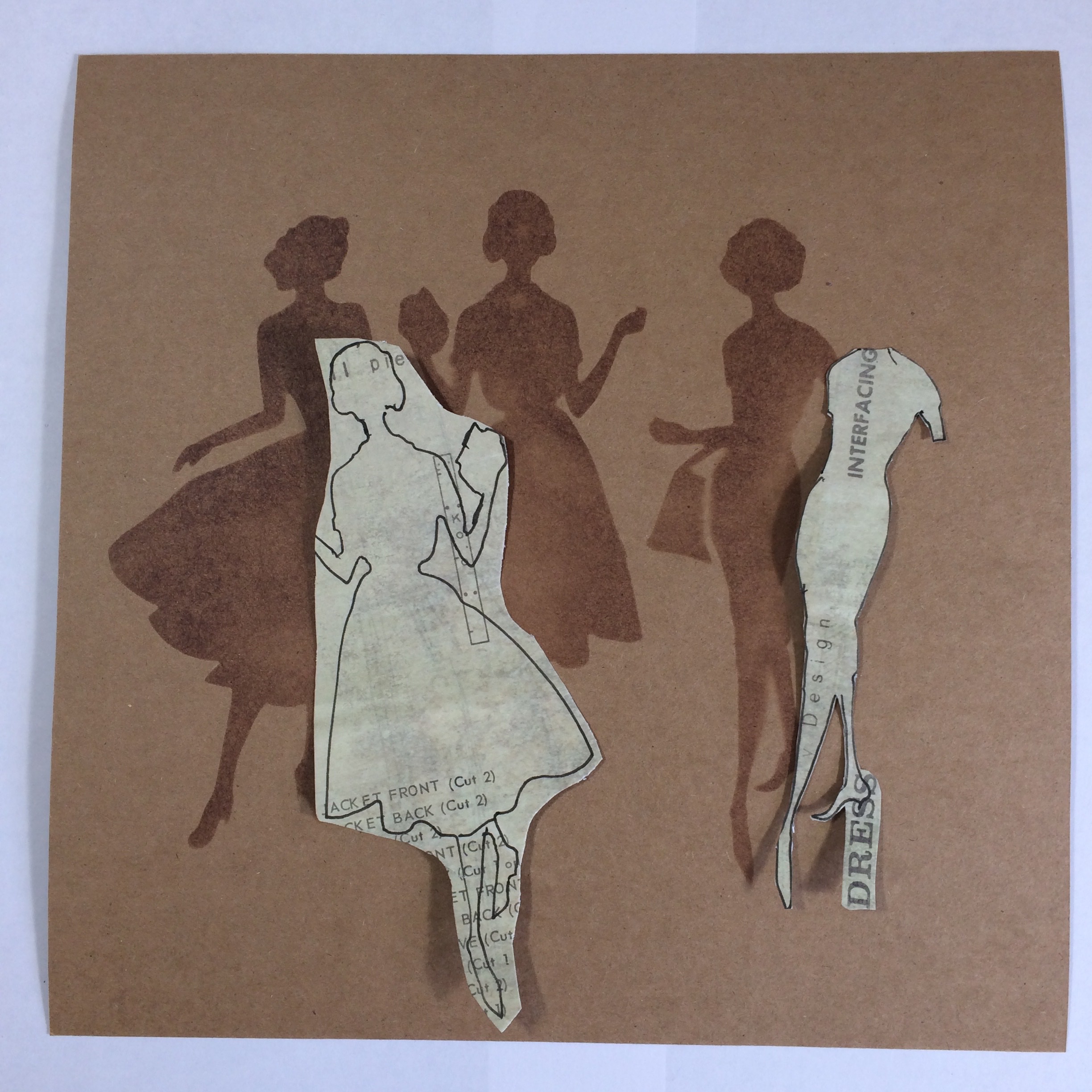 So we now have the Lady with the Self Decorated Dress, not by her, by me!!! We also have the two Ladies with the Cut out Dresses – see how I kept the Word Dress attached to her heel when I cut her out, those little interesting bits again. You could actually use Barbara Gray or Leonie Pujol’s Stickers to make an effect like this.