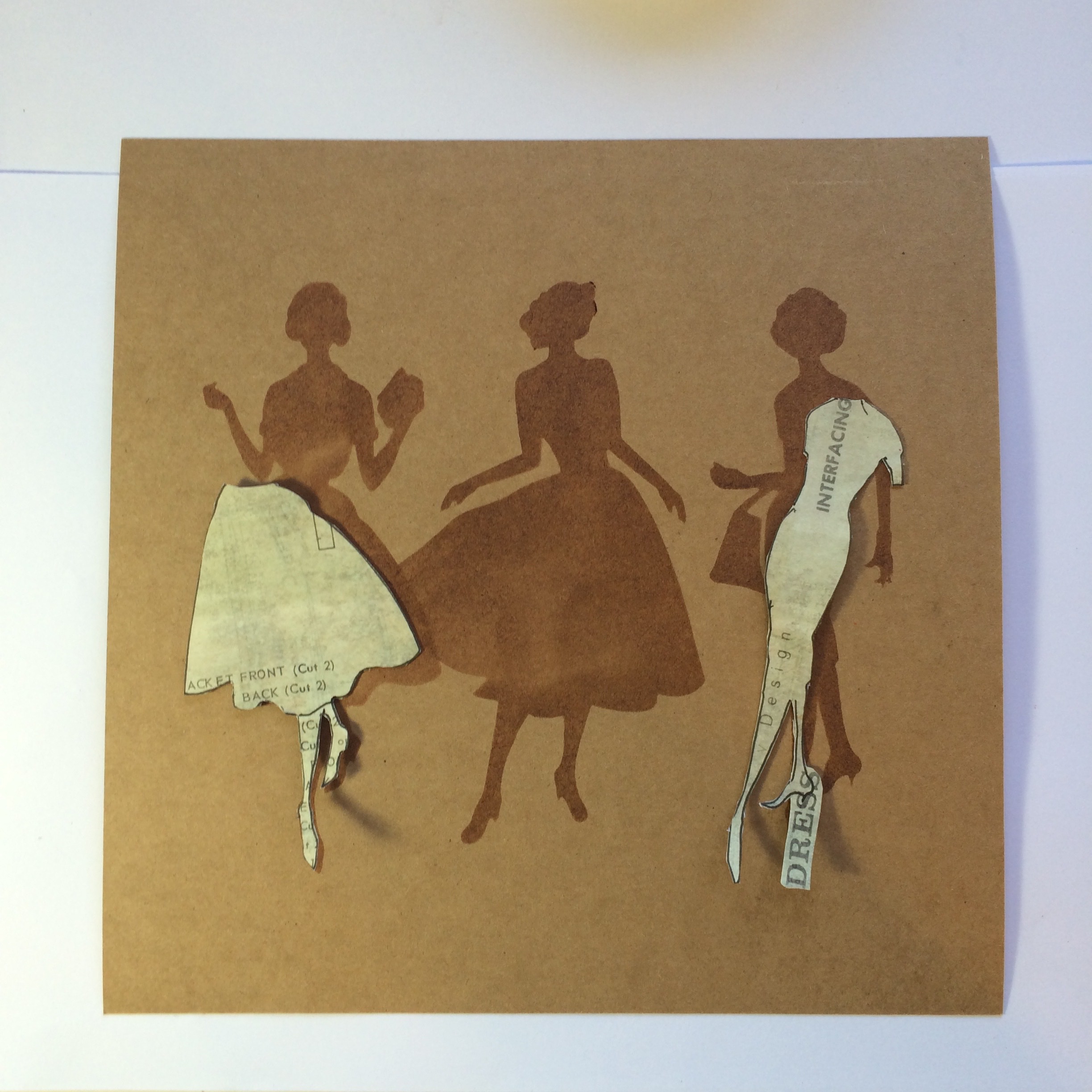 Start to place your cut out Images over your “Shadow” Image, so this is how we keep the Arms and heads etc! Ha that sounds odd when you read it out loud? I decided to give the Lady on the left a skirt and top instead of a Dress. You don’t always have to keep the images the same as they appear.