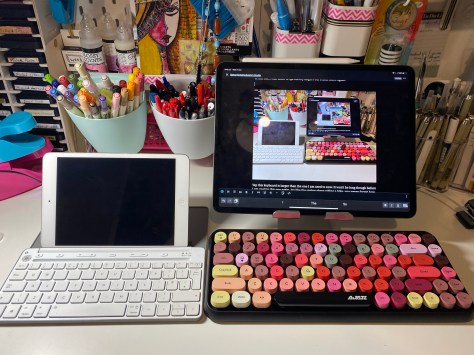 I thought I would be talking about the beautiful colours and the clacking of the keys, not to mention the beautiful black surround holding it all together. But no, in just a short space of time I am amazed at the difference in the things I can do with this keyboard compared to my old one. Having said that, it is beautiful to look at too and that is what initially drew me to it. The only thing that slowed down my choice was the fact that I couldn’t find out if it was compatible with an IPad, well I can tell you now, it is!