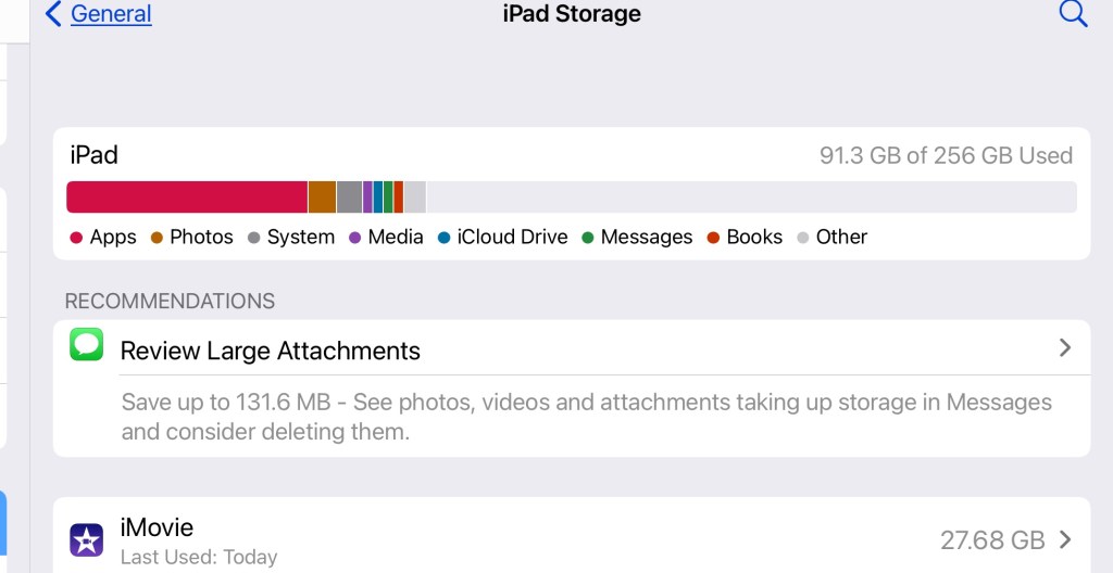 Now I am not sure if my Maths are up to scratch but as the picture above shows I think the sum is… 256GB minus 91.3 used = 165 GB of Memory Left?