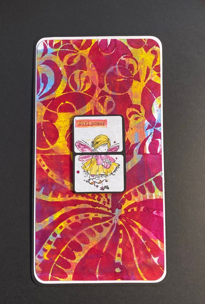 Yep you guessed it, Gel Plate print. Well a bit more than that but hey if you know and love something, then stick to it. I split the girl the match the split in the two Stencil Patterns. It makes sense to me??