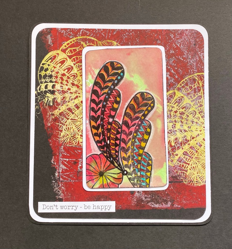 Ha Ha maybe this is why suddenly I made all these “Replacement” DT cards in one afternoon after trying the rejects over several days!! Can you see what I am talking about? Yep – I used my Gel Plate again. Why don’t I go to it first???